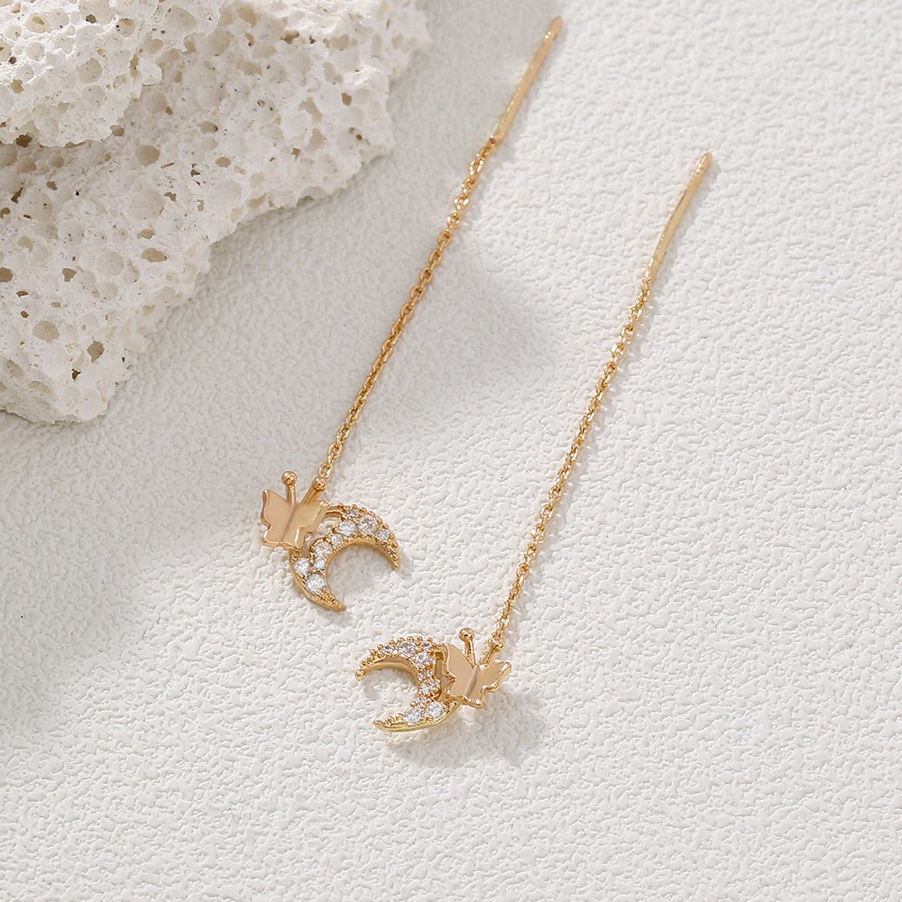 New Style Stylish Copper Micro-zircon Butterfly Moon Earrings Long Earrings Raise Earholes Earrings Earrings Earrings Female Accessories